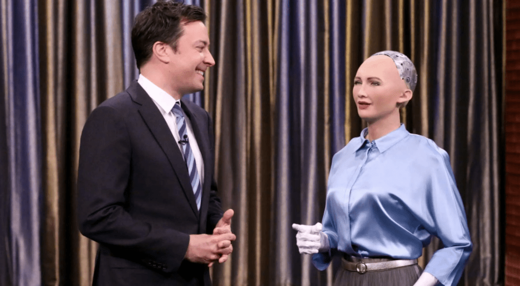 Si no lo ha visto, le explico. Sophia es un robot creado por la compañía Hanson Robotics basada en Hong Kong. Es la suma de varias técnicas (avanzadas, no hay que quitar crédito) de robótica que le permite tener gestos, procesamiento de audio que le permite escuchar las preguntas, reconocimiento de imágenes y caras, y procesamiento de lenguaje natural.