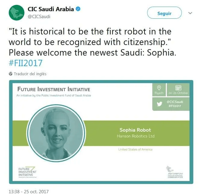 Problema número 2, la ciudadanía es brindada a este robot antes de que las mujeres tengan los mismos derechos que los hombres, y de que el sistema de «kafala» sea abolido en el país. Darle derechos a un objeto tiene sentido, para evitar daños a propiedad de una persona, pero dar una ciudadanía, es casi un chiste de humor negro, muy negro.